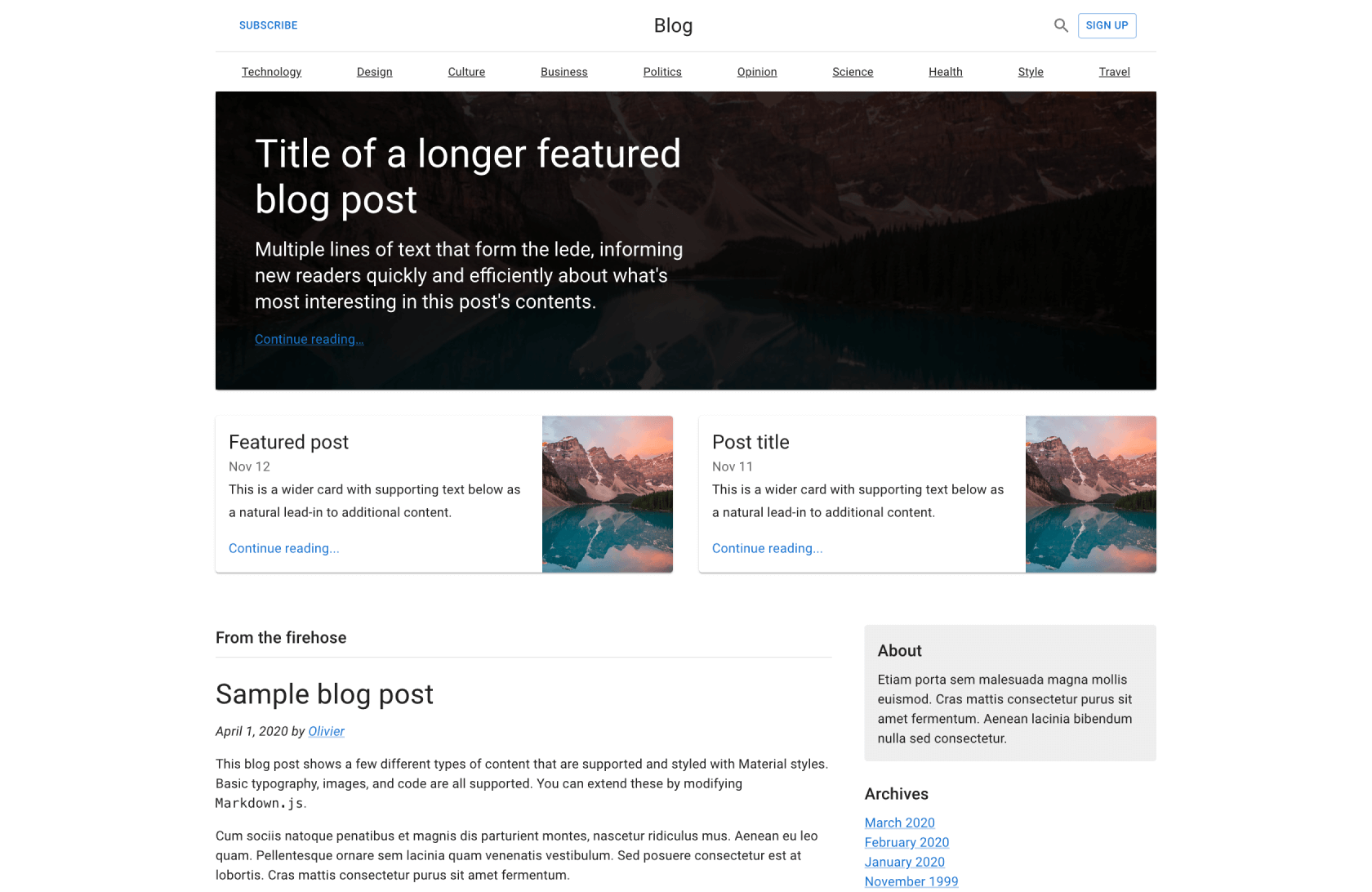 A polished blog page layout. Markdown support is courtesy of markdown-to-jsx.